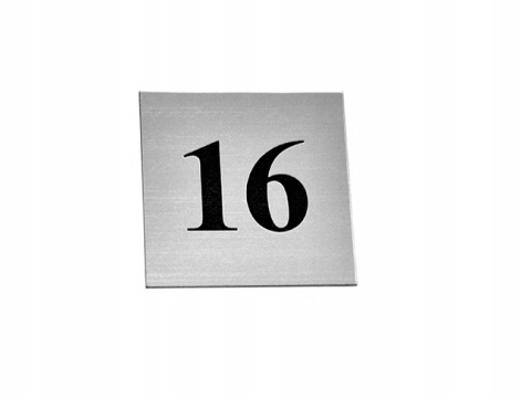 Tabliczka wykonana jest z laminatu grubości 1,6 mm w kolorze srebro szczotkowane.