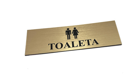 Tabliczka wykonana jest z laminatu grubości 1,6 mm w kolorze złoto szczotkowane.